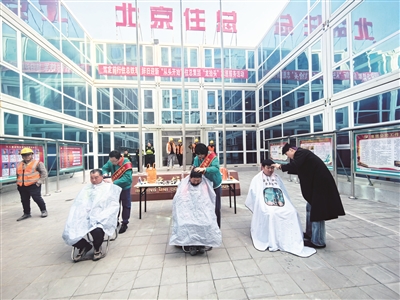 在该项目部剪发区,两名北京住总集团工会志愿服务队成员及辖区专业理发师正在忙碌着。“我想两边剪短一点,上面打薄一些”“安全帽有点卡头发,这两边能修一下吗”……有了专业理发师的加入,职工们高兴地提出剪发的要求。来自河南省的木工小张摸着新发型笑着说:“之前都是同事之间互相帮助剪一下,今天项目部请来理发师帮我们剪发,新发型看着精神多了。”