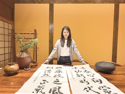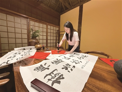 研墨、铺纸、运笔书写……这个周末,张晨璐又沉浸在墨香中,延续着自己从小就喜爱的书法兴趣。