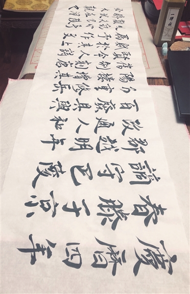 “我也逐渐从开始颤颤巍巍地握笔,转变为稳稳当当地提笔。”日渐顺畅的练习状态,让张晨璐信心倍增,她也更加刻苦练习。随着一天一天的量的积累,她的书法也实现了质的飞跃。“执笔、握笔的能力不断增强,笔法、字法、章法、墨法都有了很大提高。”