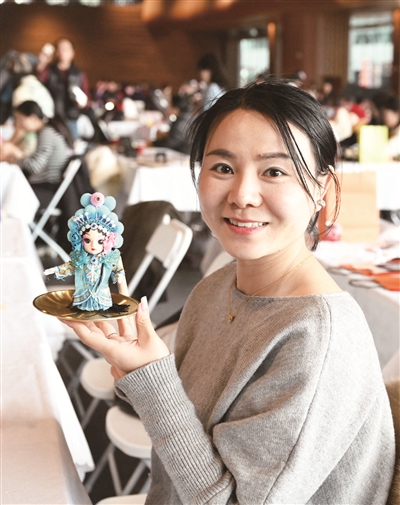 本次主题活动依托北京市文物局10家博物馆的丰富馆藏资源,共开展14项社会教育互动体验活动,参与的女职工达400多人次。女职工们提前选择好心仪的活动项目,来到指定区域进行体验。“鬃人是用胶泥、秫秸、棉花、彩衣和猪鬃制作,以皮影戏和京剧中的人物为角色塑造出丰富的形象。在铜盘敲击的声音中鬃人可以有节奏地转动,因此得名‘盘中好戏’。”大家边聆听非遗传承人讲述鬃人文化,边动手制作。