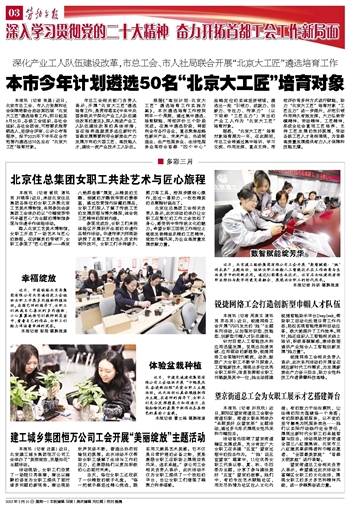 本市今年计划遴选50名“北京大工匠”培育对象