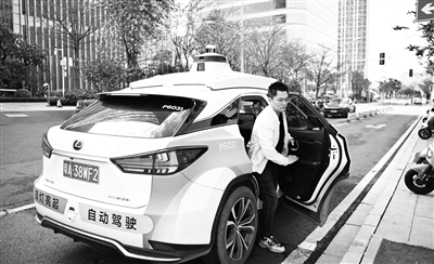 近日,总部位于广州的自动驾驶公司小马智行开通了4条自动驾驶示范运营专线,市民可在城市中心搭乘自动驾驶车往返广州白云机场和广州南站。图为搭乘小马智行自动驾驶无人商业化出租车的乘客到达目的地后下车。