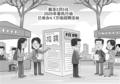 2025年春风行动启动以来,各地持续组织形式多样的招聘服务活动。人力资源社会保障部13日发布数据,截至3月5日,全国已累计举办各类招聘活动4.1万场,发布岗位3100万个;发出务工人员专车、专列、包机2.9万辆(列、架)次,输送劳动者91万人。(3月13日 新华社)□朱慧卿