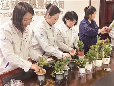 近日,北京建工新材公司嘉兴京建站开展“芳华绽放三月天 巾帼聚力绽新颜”主题活动。活动中,女职工们栽种下虎皮兰、胡椒木、满天星等花卉,该公司工会特别设计“成长认养计划”,每盆绿植附赠养护技巧与绿植成长日记,以丰富女职工业余文化生活。
