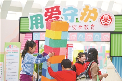 在“用爱守护——儿童生命安全教育”展览的互动区内,手偶剧表演成为焦点,吸引众人围观。专业表演老师和孩子们一起配合,用憨态可掬的手偶演绎情景剧。当手偶小人准备收下陌生人的糖果时,孩子们齐声高喊:“不可以!”这种寓教于乐的形式让防性侵知识悄然入心。