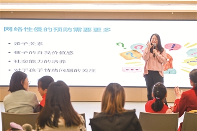 “在孩子们的成长期,家长们要多关注孩子的情绪问题……”一场以“面对网络时代的挑战,如何做好性教育为孩子保驾护航”为主题的讲座中,专家结合真实案例,通过情景模拟与互动问答,深入浅出地向家长解析如何通过家庭沟通筑牢防性侵防线。不少家长表示,专家的讲解“既有科学深度,又充满人文关怀。”余女士感慨:“今天老师讲的内容特别丰富,对我们家长有很大的启发。”