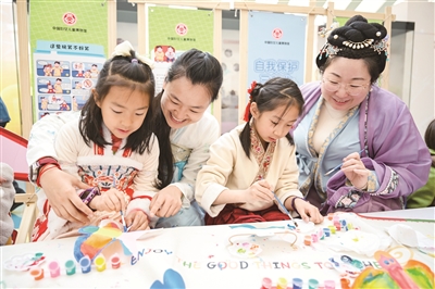 近日,以“春天里话安全”为主题的社教活动在中国妇女儿童博物馆开展。活动采用讲座、手工制作等形式,为几十组家庭上一堂安全教育课。现场,孩子们在老师的带领下制作以“用爱守护——儿童生命安全教育展”原创IP“囡囡”“囝囝”为形象的北京沙燕风筝,在活动中学习安全知识。本报记者 曹立栋 摄影报道