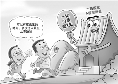 3月13日,广西出台《广西国家A级旅游景区“一票3日使用制”实施方案(试行)》,规定游客从第一次入园之日算起,3日内可持该门票再次进入景区游览。《方案》实施时间自2025年3月17日起至2026年2月28日止,劳动节、国庆节、春节3个法定节假日及相应调休日除外。(3月18日《工人日报》)□王琪