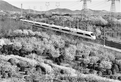 仲春时节,安徽省合肥市肥东县长临河镇合福高铁沿线樱花盛放,疾驰的列车与粉白相间的“樱花海洋”相映成趣,绘就生机勃勃的春日图景。图为近日,一列高铁列车行驶在安徽省合肥市肥东县长临河镇合福高铁线路上(无人机照片)。