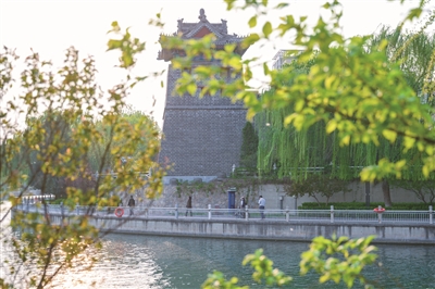 春日里的京城,阳光明媚,花红柳绿。左安门角楼下的护城河波光粼粼,与角楼相映成趣。记者看到不少市民游客在环二环滨水绿道上健身跑步、赏景拍照,尽享春日的美好。