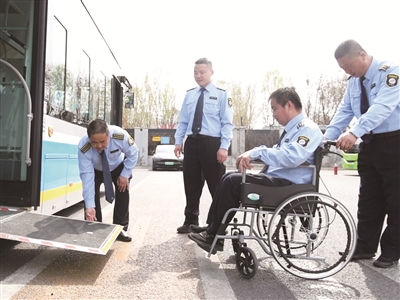 近日,首都劳动奖章获得者、北京公交集团客五分公司T105路驾驶员郭杨与T107“敬老爱老”线路驾驶员们,在土桥公交场站组织开展敬老助残模拟演练活动,以提升驾驶员的无障碍服务水平。