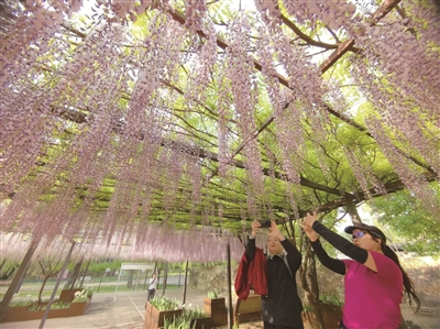 正值春暖花开,玉渊潭公园的紫藤与鸢尾悄然绽放。目前,园内紫藤品种丰富,共有15个品种、200余株,集中分布在公园西北部的科普广场、东南部的玉渊春秋景区和南部的樱珞花谷景区。今年,紫藤花期将持续至4月下旬,鸢尾花期预计持续至5月下旬,眼下正是最佳观赏期。本报记者 周美玉 摄影报道