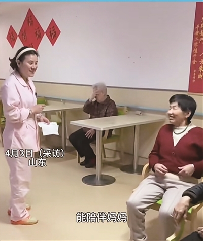 近日,山东烟台。王女士无法全天照顾有脑梗后遗症的老妈,就选择了养老院的日间托管模式,每天下班准时来接妈妈,就像当初妈妈接孩子放学一样。(新闻及图片来自生活导报官微)