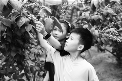 近期,浙江省诸暨市同山镇的樱桃陆续进入丰收季,红彤彤的樱桃缀满枝头。为进一步促进农文旅体融合发展,同山镇举办了篮球比赛、樱桃采摘游、共富市集以及乡村赏花游等春季文旅活动,吸引游客前来感受春季乡村美景,推进农文体旅融合发展。图为小朋友在种植大棚内采摘樱桃。新华社发