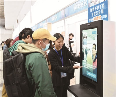 在AI体验区展台前,有不少求职者驻足围观。“简历诊断功能非常实用,AI智能求职辅导设备快速指出了我简历中的不足之处,并给出修改意见。”一名求职者在体验后点赞了AI智能服务。