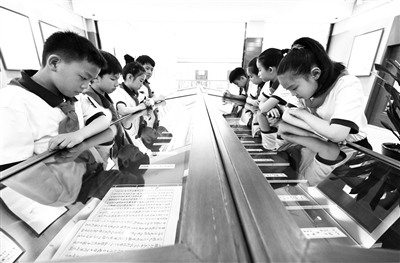 日前,河北省石家庄市图书馆推出“漫樱笺古韵——古籍保护课程进校园”活动,通过参观、讲座及手工制作等,带领学生沉浸式体验古籍修复技艺,宣传古籍保护知识。图为石家庄市实验小学学生在石家庄市图书馆参观手抄中国名著展览。