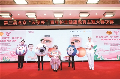 分享穴位按摩操,讲解叩背排痰要领,演示AED的操作使用方法……在第114个国际护士节即将来临之际,由北京市政法卫生文化工会主办、北京护理工作者协会承办的第三届北京“天使杯”青年护士健康教育主题大赛决赛在北京市总工会职工服务中心举办。本次大赛吸引了3200余名青年护士积极参与,收到作品1351件,经过初赛、复赛的比拼,来自30支代表队的148名青年护士晋级决赛,近200名青年护士代表来到现场观摩学习 。