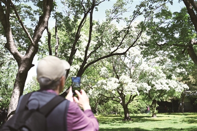 近日,陶然亭公园的流苏树迎来盛花期。如云似雪的流苏花缀满枝头,形成独特春日景观,吸引众多市民游客驻足观赏、拍照打卡。流苏树因花瓣细长如流苏得名,目前流苏树正值最佳观赏期,本周内市民仍可观赏这场“四月飞雪”奇观。实习记者 王辰阳 摄影报道