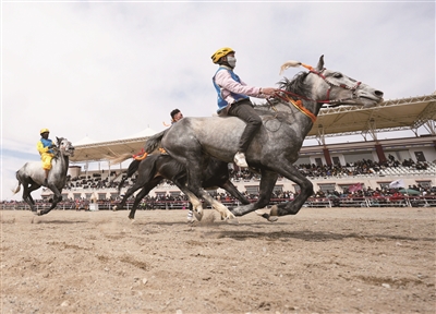 近年来,当雄县依托深厚的游牧文化底蕴,积极推动“赛马+文旅”融合,助推县域经济发展。4月23日至28日,第二届东日马超邀请赛在西藏拉萨市当雄县赛马场举行,来自西藏、云南、四川、甘肃和青海的403匹骏马,在耐力赛、速度赛等十二项赛事中一决高下。图为骑手在进行赛马比赛。