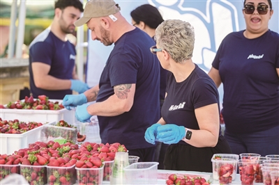 地中海岛国马耳他近日在北部城市姆贾尔举行一年一度的草莓节活动,吸引大量马耳他当地民众和外国游客参加。人们在活动期间不仅可以品尝到刚刚采摘的新鲜草莓,还可以品尝用草莓制作的各种甜品、饮品等。图为工作人员处理待售的新鲜草莓。新华社发