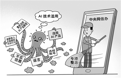 记者近日从中央网信办获悉,为规范AI服务和应用,促进行业健康有序发展,保障公民合法权益,中央网信办在全国范围内部署开展为期3个月的“清朗·整治AI技术滥用”专项行动。专项行动将分两个阶段开展,重点整治违规AI产品、重点领域安全风险、侵害未成年人权益等突出问题。(4月30日 新华社)□朱慧卿