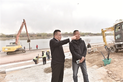 “三大文化建筑滨河空间提升工程将通过建设从水边到剧院的景观视廊,延伸三大文化建筑业态功能。未来,我们力争实现水岸与城市间的互动融合,让游船上和对岸大运河文化旅游景区内的游客能够眺望美轮美奂的三大文化建筑。”北京城市副中心投资建设集团有限公司重大项目总监陈宏达向现场负责人仔细叮嘱施工细节,并询问工期进展。
