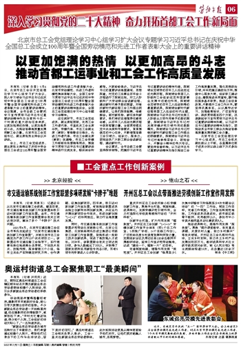 以更加饱满的热情 以更加高昂的斗志 推动首都工运事业和工会工作高质量发展