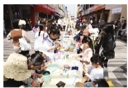 5月1日,浙江省温岭市松门镇的“万物循环”公益市集活动在岭商天玺中心中街热闹开市,当地群众闻讯后纷纷过来赶集。活动中,只见中街上摆起了长长的摊位,有“空瓶改造计划”“以书换蔬,为爱循环”“万物循环市集”,以及志愿者的便民服务摊位等。(图片及新闻来自工人日报客户端)