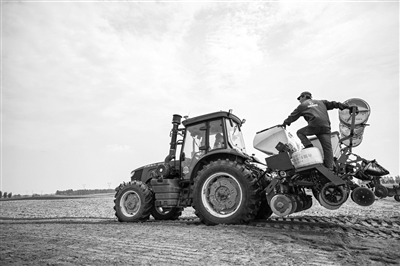 5月以来,内蒙古东部“粮仓”通辽市迎来多场接墒雨,带来充沛墒情。凭借天时地利的双重利好,当地大田春播按下“加速键”,近两千亩玉米迎来播种高峰期。据了解,2025年通辽市玉米播种面积达2000万亩,较上年增加18万亩。图为农民驾驶北斗导航的拖拉机播种。 新华社发