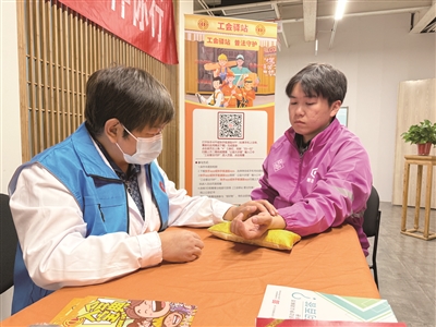 现场,来自辖区专业医疗机构的医护人员为新就业形态劳动者提供基础健康检查,并针对他们常见的颈椎病、腰椎病等职业病进行了细致的诊断和专业的康复指导。同时,医护人员耐心解答了新就业形态劳动者关于日常保健、疾病预防等方面的疑问,并向他们普及健康知识和科学的生活方式。“平时工作忙,很少有时间关注自己的健康,这次健康评估服务太贴心了,让我们感受到‘娘家人’的温暖。”一位快递员说。