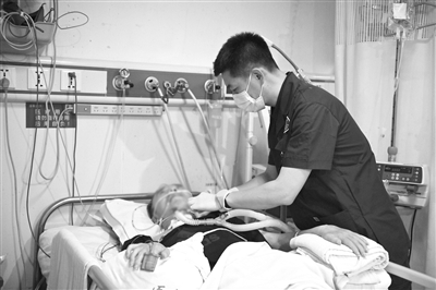 从青涩护士到管理骨干,邵龙对急诊护理工作有了更深的理解:“急诊人双手托起的不只是患者,更是医者信仰。”图为邵龙(右)对患者进行护理。