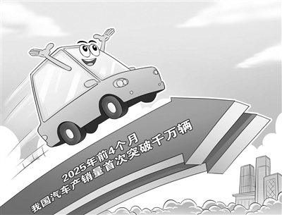 记者12日从中国汽车工业协会获悉,2025年1至4月,我国汽车产销量分别为1017.5万辆和1006万辆,同比分别增长12.9%和10.8%。前4个月产销量首次突破千万辆,彰显汽车产业活力。(5月12日 新华社)□王琪
