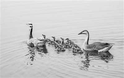 近日,鸿雁与斑头雁在北京亦庄调节池水域成功杂交孵化出11只幼鸟。此次观测到的鸿雁与斑头雁杂交幼鸟,部分幼鸟体表呈现斑头雁的灰色羽纹,喙部则保留鸿雁的形态。此类跨物种杂交案例极为罕见,或为野生物种保护提供新思路。