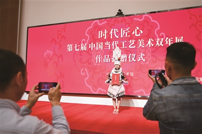 近日,由中国工艺美术馆和中国艺术研究院联合主办的“时代匠心——第七届中国当代工艺美术双年展”捐赠仪式在中国工艺美术馆(中国非物质文化遗产馆)举行。本次展览为期两个月,吸引超17万人次参观。经过对720余件/套参展作品的多轮遴选,并与有捐赠意愿的作者进行充分协商沟通后,最终共有358件/套作品无偿捐赠。本报记者 曹立栋 摄影报道