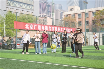 近日,北京广播电视台工会组织职工趣味足球射门活动。工作之余,爱好体育的职工们三五成群的在足球场上展示球技、放松身心。