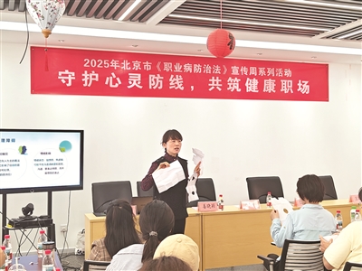 2025年《职业病防治法》宣传周活动由北京市及大兴区两级卫生健康委和工会主办,北京市职业病防治院承办的职业健康知识“进社区”活动在西红门镇党群服务中心进行。活动围绕“关爱劳动者心理健康”主题,开展面向基层社区工作者的“营造美好心环境,建设和谐新家园”主题工作坊。