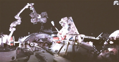 5月22日,神舟二十号航天员乘组圆满完成第一次出舱活动。这是进入空间站应用与发展阶段以来,航天员首次通过天和核心舱节点舱出舱,航天员出舱与货物出舱任务首次关联耦合实施,航天员陈冬时隔两年多再度漫步太空,航天员陈中瑞首次执行出舱任务。图为在北京航天飞行控制中心屏幕上拍摄的神舟二十号航天员陈冬出舱的画面(视频截图)。新华社发