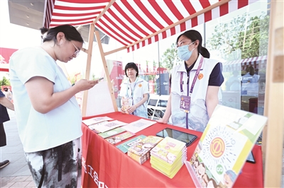 本次市级职工沟通会主会场活动在大兴区林校路街道首开万科中心举办。现场为20余名新就业形态劳动者举办了入会仪式,增强了职工对工会组织的认同感与归属感。活动中,西瓜、桑葚茶、点心等富有区域特色的企业产品展示摊位吸引了大批职工的驻足流连,钩织、健身锤、端午节五彩绳等传统手工制作让职工体验了动手的乐趣,投壶、射箭等趣味游戏激发了职工健身热情。同时,现场设置扫码入会服务、工会会员互助服务卡办理绿色通道以及免费义诊、理发、法律咨询等志愿服务,工作人员为职工群众宣传工会的职能和服务,打通服务职工群众“最后一公里”。