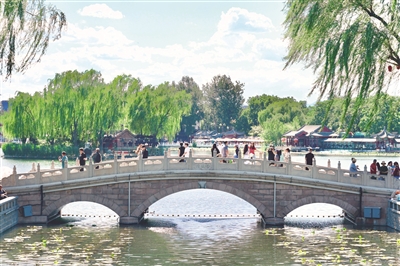 昨天是端午假期的最后一天,京城天空晴朗湛蓝,什刹海波光粼粼倒映蓝天和白云,大家纷纷走出家门欣赏靓丽风景。