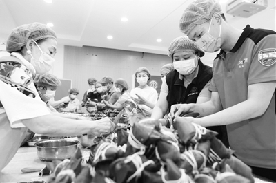 端午粽香飘,关怀暖人心。近日,朝阳区安贞街道黄寺党群服务中心携手史超齐劳模摄影工作室举办“粽香暖‘新’,欢度端午”包粽子活动,以传统民俗为纽带,为新就业形态劳动者送上节日祝福,让他们感受到“家”的温度。本报记者 刘欣欣 摄影报道