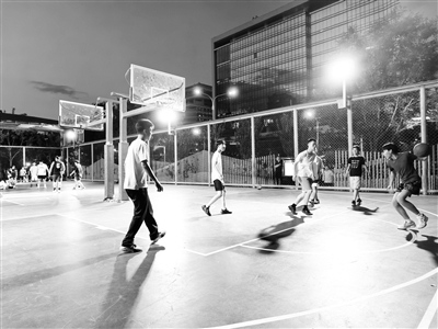 昨晚,记者在一家户外篮球场看到一群篮球爱好者在赛场上挥洒汗水、锻炼身体。由于白天气温较高,大运动量的锻炼容易引发中暑,因此许多上班族都选择将锻炼的“生物钟”调整到晚间。如今,每到夜晚,京城众多户外运动场地都变得异常火爆。