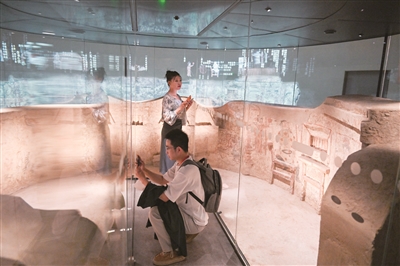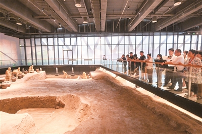 来到遗址展厅,观众可直观考古现场,感受汉代的水井和陶窑,还可以通过信息化技术了解汉代居民的生产和生活。