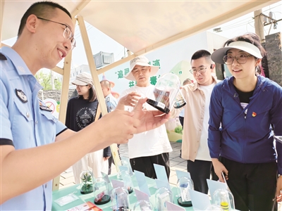 在第38个“6·26”国际禁毒日即将来临之际,昨天,北京市天堂河强制隔离戒毒所联合北京市林则徐禁毒教育基地共同开展“追寻英雄足迹 共建无毒社会”禁毒日系列活动。活动通过“市集”的形式搭建多元展台,与市民零距离互动体验,全方位普及禁毒戒毒知识,吸引众多市民参与。本报记者 孙妍 摄影报道