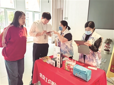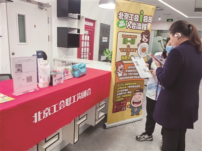 在国数先导区,工会工作人员一到现场就吸引了不少职工目光。由于事前已经进行了简单沟通,到达现场的职工大多都是带着问题来的。有的职工对工会的职工互助保障“二次报销”项目很感兴趣,询问是否与个人或者企业购买的商业保险冲突,在报销流程上是否有什么困难;还有的职工表示,自己多年前在前单位已加入工会,但现在已经记不清自己是否办理过北京工会会员互助服务卡了……面对职工的各种疑问,工作人员一一进行了耐心回答,受到职工一致好评。