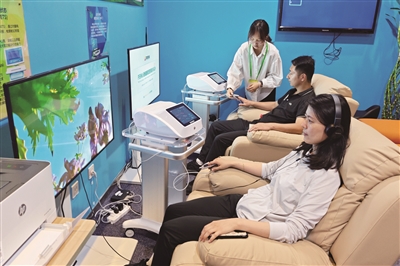 北京市职工发展心理体验示范中心设置了展示宣传区、个体支持区、阅读视听区、放松训练区、活动体验区、冥想训练区等6个功能区域,工会干部和职工依次体验了沉浸冥想训练、VR放松舱等互动项目,通过科学仪器评估自身压力指数等心理健康指标,并在专家指导下,学习如何应对职场压力、改善睡眠质量等实用技巧。职工们纷纷表示,这种沉浸式体验的学习形式非常新颖,不但学习了心理知识,释放了自身压力,还掌握了职工心理服务的好方法,为今后更好地开展相关工作提供了保障。
