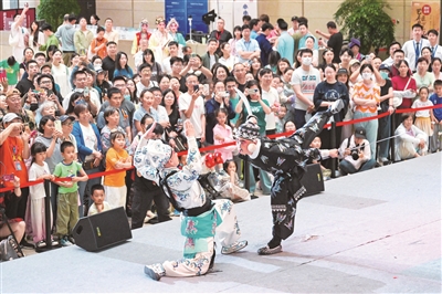 “快看,这里正在表演京剧《三岔口》!”中国非物质文化遗产馆(以下简称“中国非遗馆”)中央大厅内人头攒动,台上表演的节目引得观众们的阵阵掌声,气氛热烈。这场非遗展演由中国戏曲学院、吉首大学、延边大学等15所高校师生与非遗传承人及从业者合作,带来京剧、茂腔、《玛纳斯》史诗等非遗节目,集中展示中国非遗传承人研修培训计划这十年来的成果。