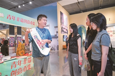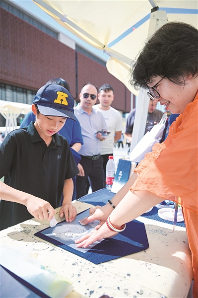 “我在这里看到了许多非遗传承人,他们都是小哥哥和小姐姐。”一位小观众在蓝印花布摊位上体验印花技艺时说,“非遗传承人越来越年轻,他们的产品也充满着青春的主题。我长大后也要向他们学习,也要做非遗文化的传承者。”