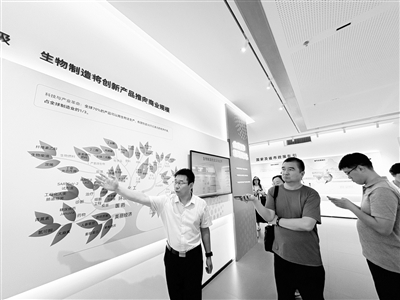 走进北京市合成生物制造产业集聚区·会客厅,这里集中展示了先正达、中粮、微元合成等代表性企业以及全国30余家企业及科研院所的100余件实物展品,涵盖生物医药、农业食品、新材料等多个领域,充分展现了合成生物技术在不同场景的应用潜力。