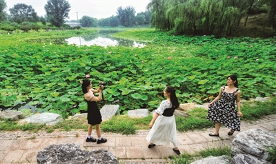 近日,圆明园第三十届荷花节开幕,将持续至8月31日。本届荷花节深度融入北京“花园城市”建设的生态蓝图。荷花节期间,游客可在长春园海岳开襟码头乘船,泛舟荷花深处,还可在如园、凤麟洲、风荷楼等水域观赏到睡莲。多稼如云景区是圆明园荷花科研基地与种质资源圃,集科研、生产、观赏于一体,游客可以在这里观赏到近200种荷花,如“红千叶”“友谊牡丹莲”“曙光”等。本报记者 边磊 于佳 摄影报道