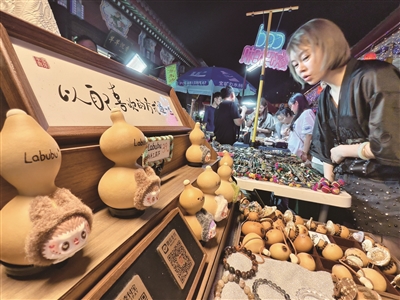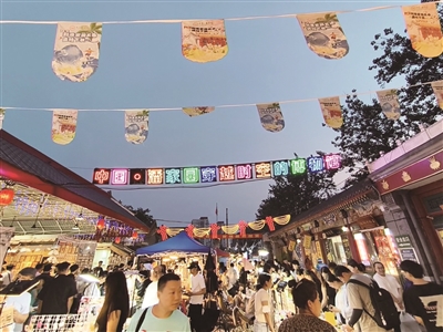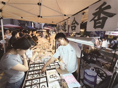 潘家园旧货市场的夜场可以追溯到早年间的“鬼市”。经过时间的洗礼,文化范儿逐渐成为这里的主色调,不仅是文玩爱好者,许多年轻人也开始走进潘家园,体验地摊文化,从而诞生了“潘家园文化夜市”。据统计,每场夜市平均客流量超过1万人次,其中年轻人占比超过60%,已成为北京夜间经济的亮丽名片。特别是今年4月底,夜市进行全新升级,在原有周三、周五夜市的基础上,新增周六非遗主题夜市,实现“潘家园市场全年365天每天都开市,每周三、五、六都有夜市”,为市民游客带来更丰富的文化体验。
